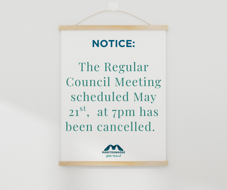 May 16, 2025 - In News By Chelsea 0 Public Notice: Regular Council Meeting May 21st Cancelled Public Notice: Please be advised that the Regular Council Meeting scheduled for May 21st, 2025 has been cancelled. The next Regular Council Meeting is June 11th, 2025. We apologize for any inconvenience this may have caused. Previous Municipal Office Closure – 12:00 pm – 1:00 pm on May 16th, 2025 Next Public Notice: Ontario Clean Water Agency (OCWA) – Flushing Hydrants